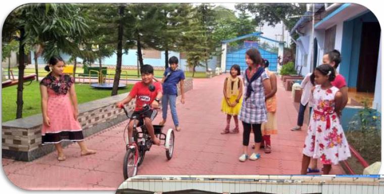 We Flame of Hope jest kilka rowerów, ale nie wszystkie dzieci mogą z nich korzystać. Dla nich wspaniałym pojazdem okazał się trójkołowy rower – prezent od Adama, brata siostry Anny. Pomaga w rehabilitacji, daje dzieciom możliwość poruszania się i radość. Jeżdżą na nim: Roshni, Sneha, Suprija, Ciaciu i Anand.