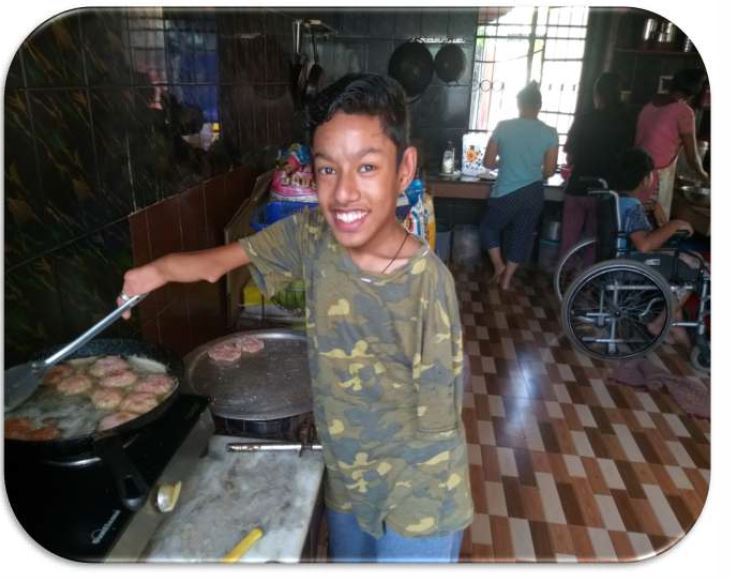 W Kurseongu w tym roku były obfite zbiory kabaczków. Nie sposób było wszystko zjeść, więc Usha wpadła na pomysł, by zawieźć je do Siliguri i tam wysuszyć na słońcu. W niżej położonym Siliguri skończył się już monsun i nastały skwarne dni. To jest czas na przygotowanie gleby pod uprawę groszku, marchewki, szpinaku. W czasie monsunu wszystko tonie w wodzie, nie przetrwają tego ani kabaczki ani inne warzywa. Teraz trzeba najpierw przekopać ziemię a następnie posiać. Prawie wszyscy byli tym zajęci, ale posiłek też był niezbędny, więc zabrał się za to Akash. Jest w tym bardzo dobry, zwłaszcza jego desery są pyszne. Tym razem smażył kotlety rybne.